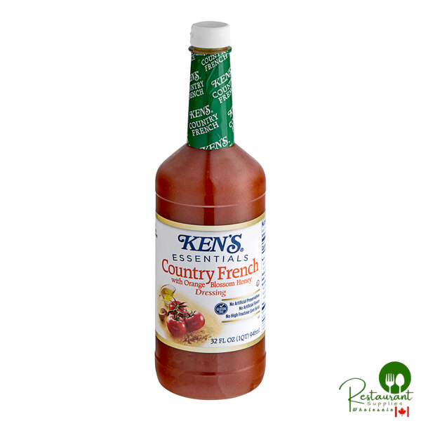 Stock up on Ken's Foods country french with orange blossom honey dressing for your salad bar, restaurant, or catered event! French dressing is an oil and vinegar-based condiment that's thickened with tomato paste that also gives it a distinctive, vivid red color. Plus, this dressing is sweetened with a touch of orange blossom honey to give it an extra tangy flavor!