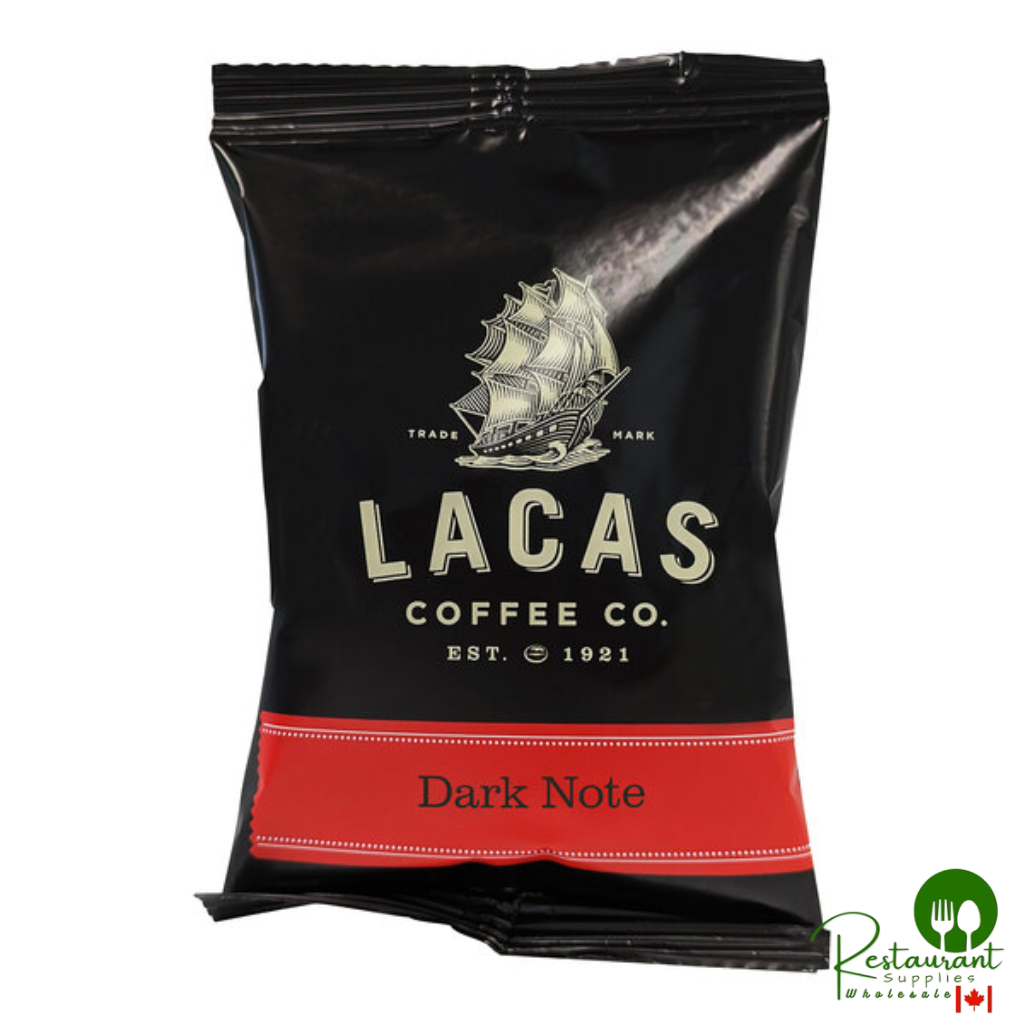 Enhance your customers' morning routine with the delightful flavors of this Lacas Coffee dark note coffee packet. This coffee features both a deep color and a deep flavor profile. You'll be delighted by the citrus notes and sweet finish that this coffee offers. Its full body and dark roast make it a bold and satisfying option, while the use of indirect heat during the roasting process ensures a smooth finish without any carbon aftertaste.