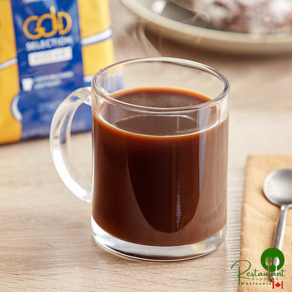 Ideal for restaurants, cafes, and coffee shops, this coffee is packaged coarsely ground in convenient 2.5 oz. pre-portioned packets. This innovative packaging saves precious time and labor costs since the grounds are ready to brew for quicker service. The uniform grinding ensures a consistent product that your customers can depend on.