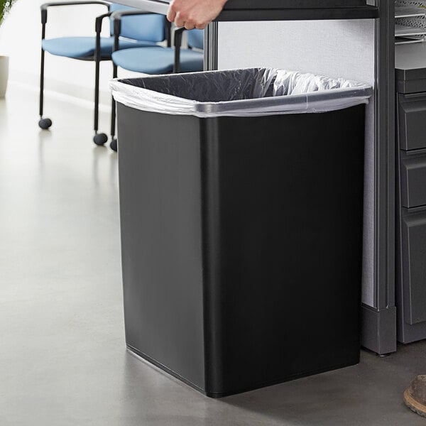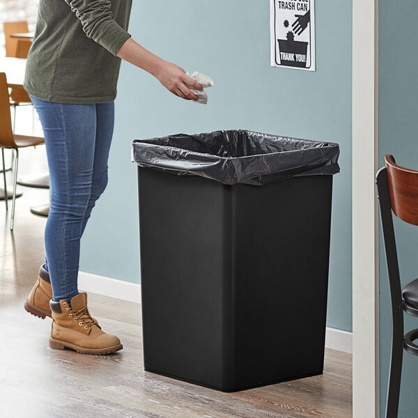 Perfectly proportioned for use in shopping malls, schools, and restaurants, this Lavex 35-gallon black square trash can is a wonderful addition to high-traffic areas where space is at a premium.