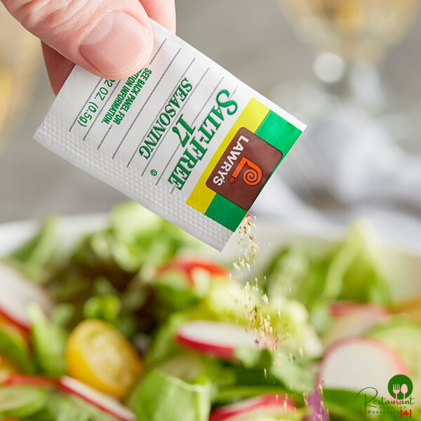 Invite your customers to turn up the flavor on all their favorite dishes with this Lawry's salt-free 17 seasoning packet! This complex seasoning blends 17 herbs and spices - including basil, oregano, garlic, black pepper, dill, sage, turmeric, toasted sesame seeds, red bell peppers, orange, and lemon peel - to create richly complex flavor. This salt-free spice blend offers a great way for customers to customize the flavor of their meals without adding sodium! Your guests will love adding this seasoning to their soups, salads, pasta dishes, and sandwiches. This versatile seasoning makes a great addition to a wide variety of entrees and sides.