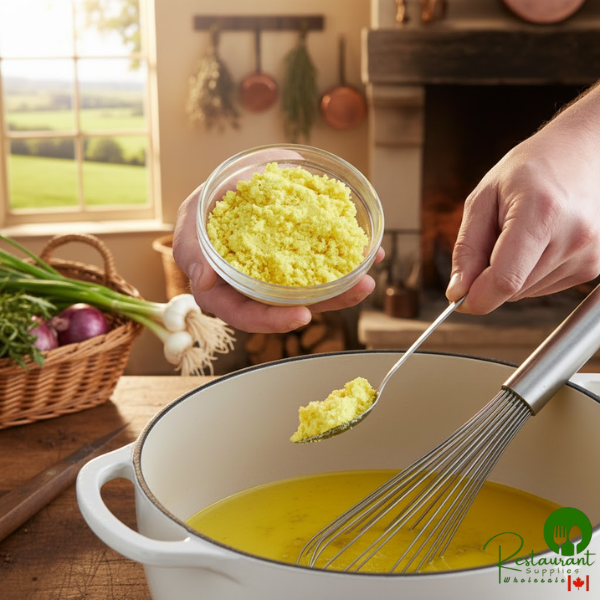 For smaller quantities: Add 1/2 cup of chicken base to 5 quarts of boiling water, plus any other desired ingredients.