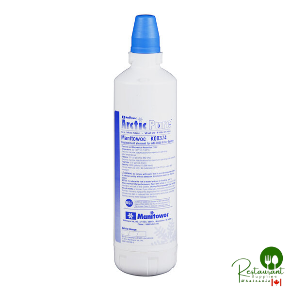 Replace the used water filter cartridge in your SM-50 undercounter ice machine with a fresh Manitowoc K-00374 cartridge. This replacement cartridge fits in the bottom-mounted filtration system built into your SM-50 octagonal cube ice machine.