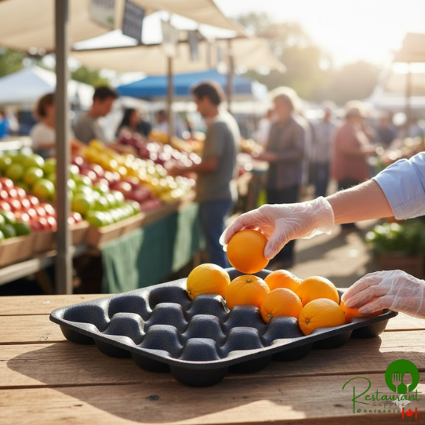 Product Overview Promote fresh, long-lasting produce with this black 20-section produce riser padding for apples and oranges! This foam riser...