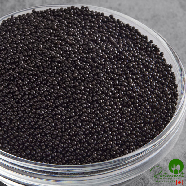 Turn every occasion into a celebration with delicious desserts and confections covered in these black nonpareils. Fun and decorative, these nonpareils enhance the overall presentation of any dessert, tempting your customers back for more. Their subtle flavor mixes well with icings, toppings, and other ingredients. Simply pour your nonpareils into a serving dish, and you're ready to start concocting ice cream sundaes and other dessert creations! This VERSATILE INGREDIENT is great to have on hand in any bakery, and with 10 LB. BULK SUPPLY, you'll be in good supply! Store in a cool, dry place, between 55 and 60 degrees Fahrenheit.