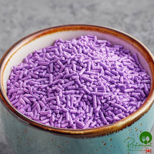Put the finishing touches on your baked goods and sweet treats with these Mavalerio purple sprinkles! Tiny, thin, and rod-shaped, these sprinkles add unique texture, a pop of color, and a subtly sugary flavor to any sweet dish. They feature a bright purple color that will add visual appeal to your desserts. Use them on their own or mix them with other sprinkles to create custom color mixes. You can turn any occasion into a celebration with delicious baked pastries covered in these purple sprinkles!