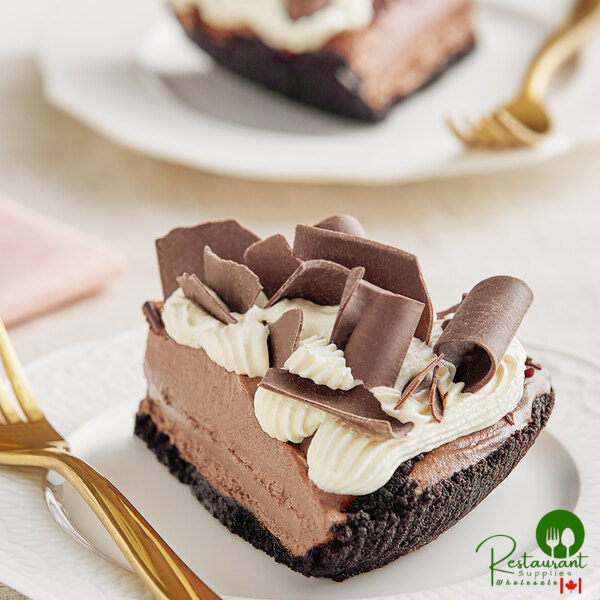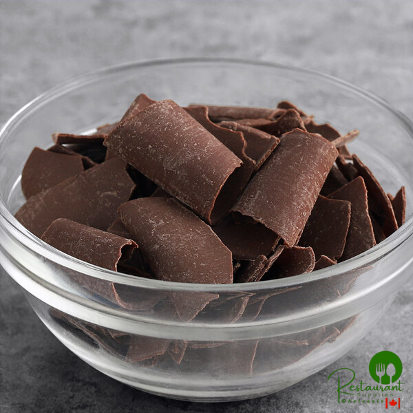 These chocolate shavings are perfect for decorating cakes, cookies, frozen desserts, and beverages in your establishment. Because they're pre-shaped, these shavings cut down on preparation time and the need for skilled labor in your kitchen, saving you money while still allowing you to add a high-end garnish to your sweet treats.