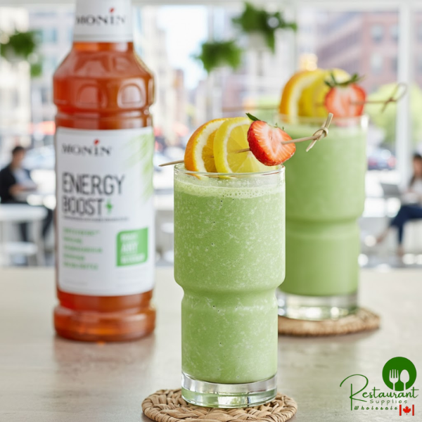 Best of all, this low-calorie liquid beverage supplement does not contain any artificial colors, flavors, sweeteners, or preservatives, as well as no added sugar, sodium, or gluten making it suitable for most diets. Monin energy boost is packaged in a shatterproof plastic bottle and boasts a sleek appearance for an attractive shelf presence in your cafe, juice bar, or restaurant. It can easily be paired with a compatible syrup pump (sold separately) to accurately measure and cleanly dispense the product.