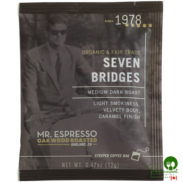 Serve unique, fire-roasted single serve coffee without the need for a coffee machine with this Mr. Espresso organic seven bridges blend coffee single serve bag! These eco-friendly, commercially compostable single serve coffee sachets are filled with the perfect pre-measured amount of organic, fair-trade, specialty micro-roasted coffee.