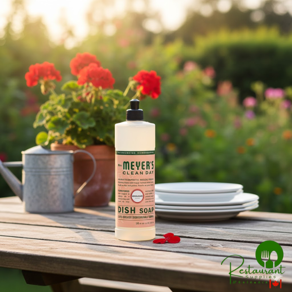 Easily eliminate tough-to-clean grease with Mrs. Meyer's Clean Day 16 oz. geranium scented dish soap! This specially formulated dish soap is designed for hand washing pots and pans, combining powerful cleaning with environmental consciousness.
