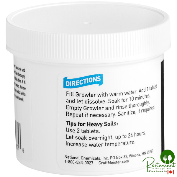 Simplify your growler cleaning process with National Chemicals Inc. 33015 Craft Meister growler cleaning tablets. These innovative tablets provide the perfect solution for cleaning any style growler with minimal effort and maximum effectiveness. The convenient pre-measured formula ensures consistent cleaning results every time.