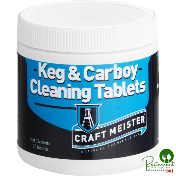 This National Chemicals Inc. 33022 Craft Meister keg & carboy cleaning tablet 30 count is the perfect option for cleaning your brewing equipment with minimal effort. Just fill a keg or carboy with warm water, add a tablet, soak for 10-15 minutes, then dump and rinse. It rinses away easily with no residue, taste, or odor left behind so you can continue to provide guests with great tasting beers!