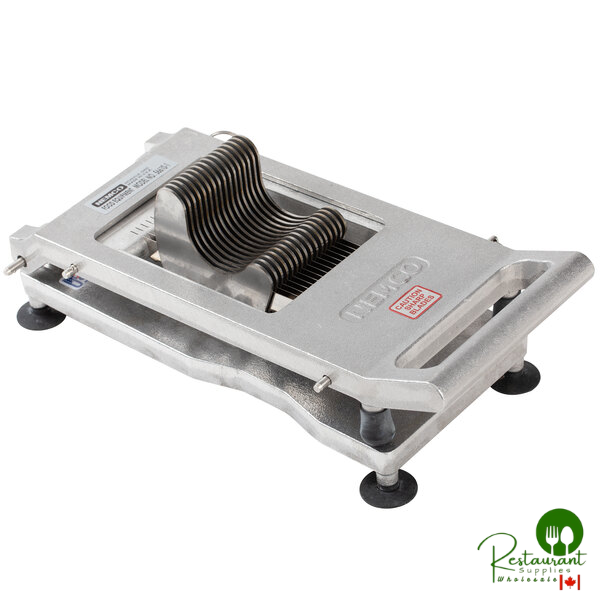 The Nemco 56610-1 features a specialized design specifically engineered for Roma tomatoes' oblong shape, ensuring consistent slices that traditional slicers cannot achieve. The scalloped-edge blade creates decorative presentation-ready slices.