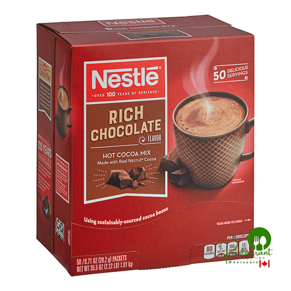 Allow your patrons to indulge in the little things in life with this Restaurant Supply Wholesale Canada rich chocolate hot cocoa mix. For over 100 years, Restaurant Supply Wholesale Canada has been providing customers with the richest and creamiest chocolate products. With this rich chocolate mix, you can remind your guests of warm memories spent enjoying a cup of hot cocoa with loved ones on a cold winter's day - and now they can have those moments any time of the day or year. Made of only the best ingredients, the rich hot cocoa mix is sure to satisfy chocolate-lovers of all ages. Packaged in individual serving-sized envelopes, this mix is also great for portion control. These convenient packets are ideal for use in your coffee shop, concession stand, office, waiting room, or as a hotel room amenity.
