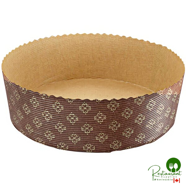 Showcase your premium baked creations with Novacart's elegant brown and gold tall paper baking molds. These professional molds feature a sophisticated design with a brown background and gold floret print overlay that captures customer attention while providing exceptional baking performance.