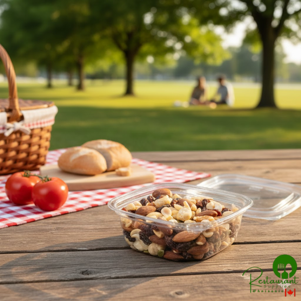 Not only will this container make your guests happy, but it will make Mother Nature happy too! Each container is made from food-grade recycled PET and is composed of a minimum of 50% post-consumer recycled material. This eco-friendly container conserves natural resources, and your purchase will help to sustain the environment for future generations.