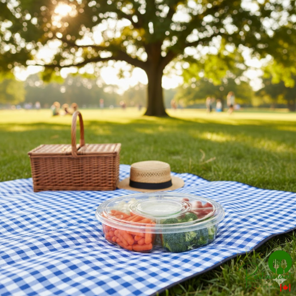 Five compartments prevent cross-contamination between different food items. The center section is perfect for dips, sauces, or additional food items.