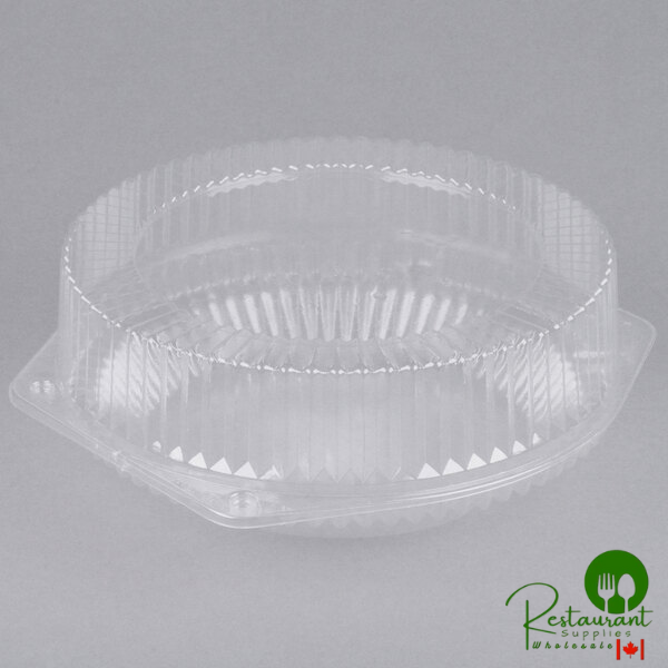 Showcase your delectable pies with optimum visibility in this clear hinged plastic pie container. The high dome lid makes it perfect for thick pies, like meringue pies with heavy whipped cream layers, while the crystal clear design creates eye-catching displays that highlight your baked goods.