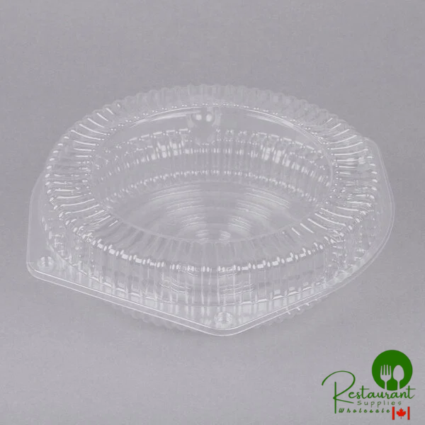 Display your decadent shallow pies with optimum visibility using this crystal clear round container. Perfect for bakeries, grocery stores, and catering events, this container features a dome lid and secure hinged design that showcases your desserts while providing reliable protection.