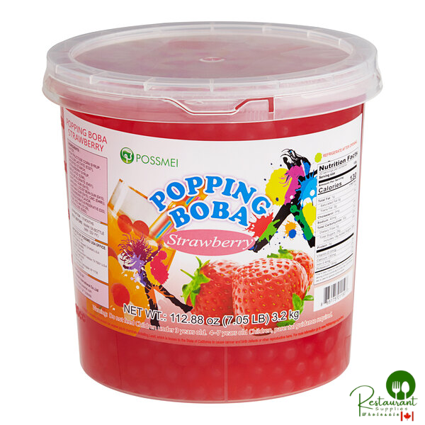Take your beverage menu to the next level with this Possmei strawberry popping boba! Made with a chewy, gummy exterior and a center filled with sweet syrup, this boba delivers an addictively fun texture that will keep your customers coming back for more. The sweet strawberry flavor and bright red color of this boba will add an attractive look and pleasant taste to your milk teas, fruit teas, smoothies, and other specialty drinks.
