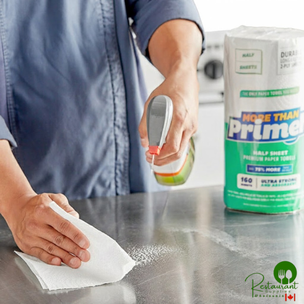 Choose the reliable, high-quality paper towels your business needs with this Prime More Than Enough 2-ply premium half sheet paper towel roll. This 160 sheet paper towel roll is ultra strong yet soft and absorbent, requiring less sheets for cleanup. It also boasts over 75% more paper per roll when compared to Prime Enough full sheet paper towel rolls, keeping you supplied with an abundance of paper towels. This paper towel is perfect for stocking your pantry, break room, or kitchen. Plus, it's compatible with standard roll paper towel holders for easy dispensing.