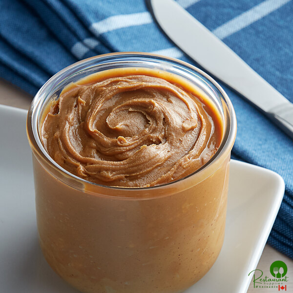 This premium peanut butter has a fresh roasted flavor that's slightly salty and sweet. Lightly ground after being hand roasted in small batches, this peanut butter provides you with just the right amount of texture and crunch. Plus, it's never oily or greasy, and it's a great source of protein. Peanut butter also supplies some essential vitamins and minerals. A favorite for centuries, peanut butter is just as popular today! With so many uses, this versatile chunky peanut butter is an excellent bulk multi-purpose ingredient that you'll be using again and again for mouth-watering recipes in your restaurant, bakery, or diner.