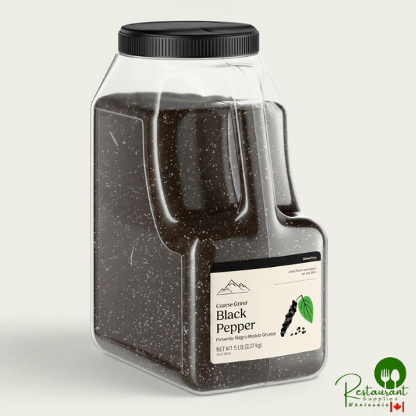Premium coarse ground black pepper with bold, biting flavor and convenient flapper lid for easy dispensing