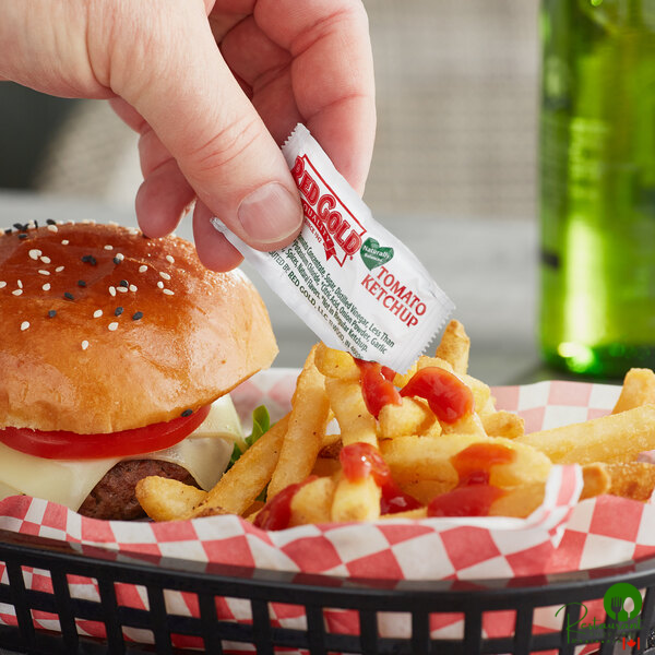 The exceptionally fine consistency makes this ketchup ideal for dipping, drizzling, and spreading, and the compact 9 gram packet size is an essential feature for take-out and on-the-go customers. Provide these packets on your countertops, tables, and condiment stations as an easy way for your guests to top off their favorite menu items. Whether it's old-fashioned burgers, classic ballpark-style hotdogs, or golden, crispy french fries, Red Gold ketchup packets provide the perfect combination of convenience and quality flavor that make them the ideal option for high-volume, fast-paced establishments.