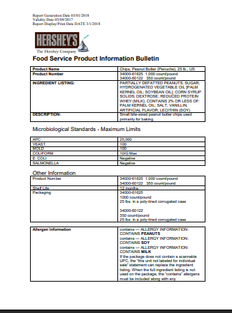 Owned by Restaurant Supply Wholesale Canada, our brand specializes in perfecting the decadent combination of creamy peanut butter and smooth milk chocolate. Our peanut butter products were first created in 1928, and are now known the world over. Whichever way you use them, Restaurant Supply Wholesale Canada's product line of peanut butter cups, baking supplies, and toppings brings freshness, great flavor, and the assurance of a beloved, recognizable brand to your business. Stock up and save with this bulk supply of peanut butter baking chips!