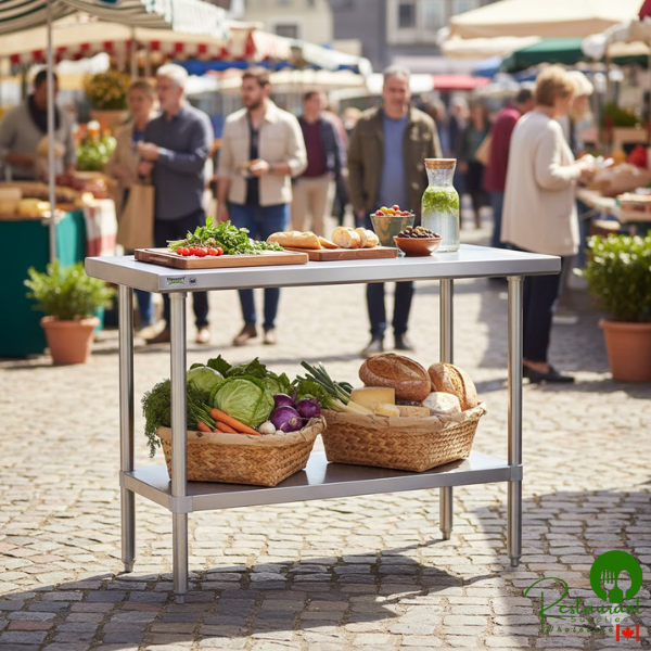This versatile work table is designed to provide a reliable, easy-to-maintain surface for food preparation, assembly, and staging. The inclusion of a lower shelf offers valuable space for storing pans, trays, or ingredients, keeping your work area organized. A practical and long-lasting addition to any professional kitchen.