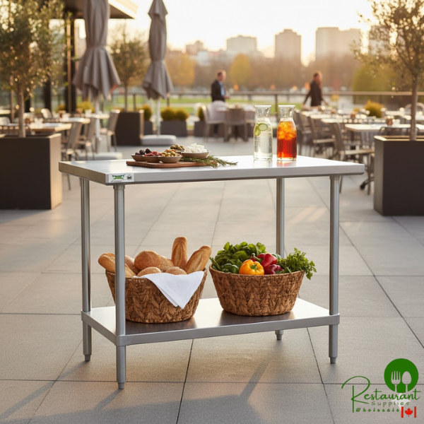 Increase your kitchen workspace with this professional-grade stainless steel work table. Perfect for chopping, sorting, and assembling, this table provides a sturdy, spacious surface for food prep and storage. With its high weight capacity, easy-to-clean surface, and functional design, you can organize your kitchen to create an efficient workflow.