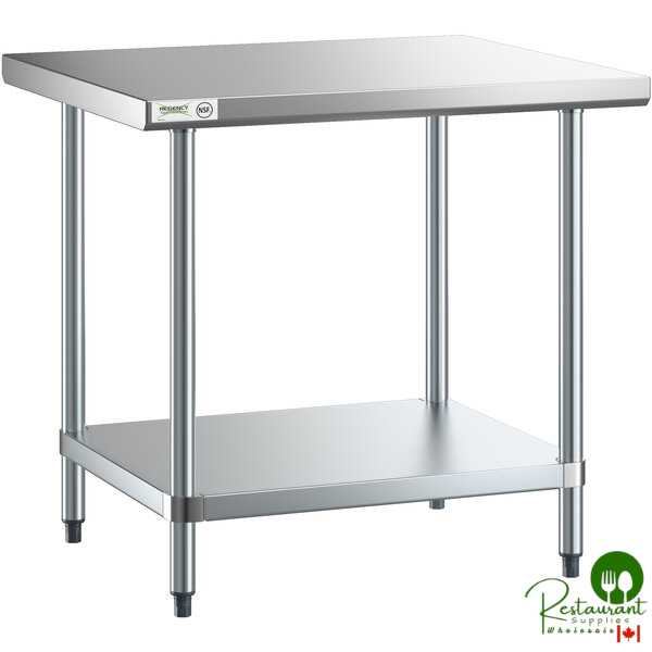 Increase your kitchen work space with this Regency 30" x 36" stainless steel commercial work table. Great for chopping, sorting, and assembling, this work table provides a sturdy, spacious surface for food prep and storage. With its high weight capacity, easy-to-clean surface, and overall functional design, you can organize your kitchen to create an efficient work flow.