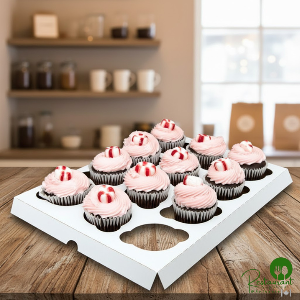 Ideal for specialty cupcake shops, grocery store bakeries, and catering services, this insert promotes impulse sales at checkout counters while offering reliable protection for special orders. The reversible design adds versatility to your packaging options.