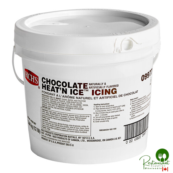 Add the finishing touch to your desserts with Rich's chocolate Heat n' Ice donut & roll icing! This icing delivers an indulgent chocolate flavor with a visually-appealing shine that is sure to enhance the taste and presentation of your offerings. Use it for dipping your donuts and other pastries or for drizzling atop cakes, scones, and sweet rolls to merchandise at your donut shop or in your cafe's bakery case.