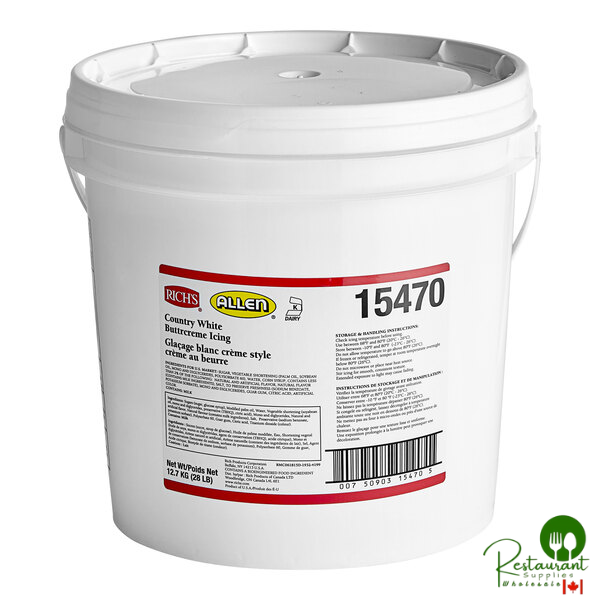 Add the finishing touch to your desserts with Rich's country white buttercream-style icing! This buttercream-style icing features a smooth, sweet buttercream flavor and a glossy, off-white, home-style buttercream color that can be easily blended with food colorings.