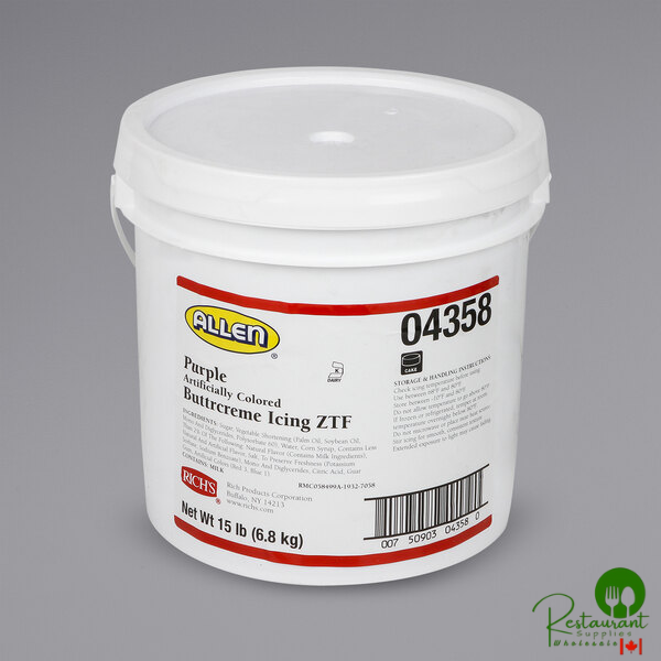 Achieving a bold, eye-catching purple color for your icing is no longer a difficult, time-consuming task with Rich's purple buttercream-style icing! This buttercream-style icing features a glossy, vibrant purple color and a smooth, sweet buttercream flavor. Ideal for bakeries, sweet shops, and caterers, the icing is designed to be firm enough for decorating yet smooth enough for spreading to provide you with easy, versatile application. Use it to frost cakes, cupcakes, cookies, and other specialty desserts, for filling cakes and cupcakes, or for creating piped decorations like flowers and leaves. Additionally, this icing can also act as an adhesive layer for fondant.