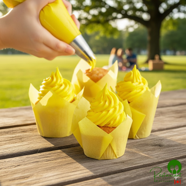 Ready-to-use, vibrant yellow icing for professional baking