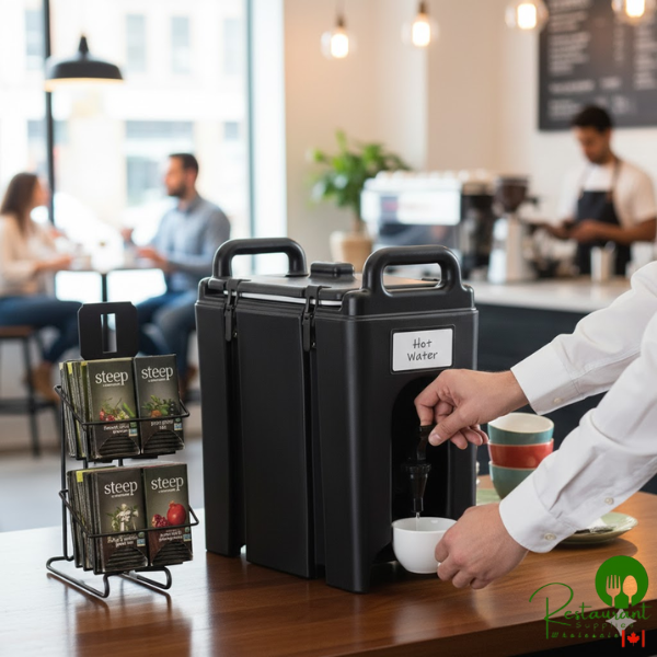 Featuring a sleek black color and intuitive design, this beverage dispenser is designed to offer everyday transport and storage of your most popular hot or cold beverages, while providing an incredibly durable design at the same time. A drip proof recessed spigot allows for convenient access, and included self-adhesive beverage labels ensure quick identification of contents by on-the-go guests.