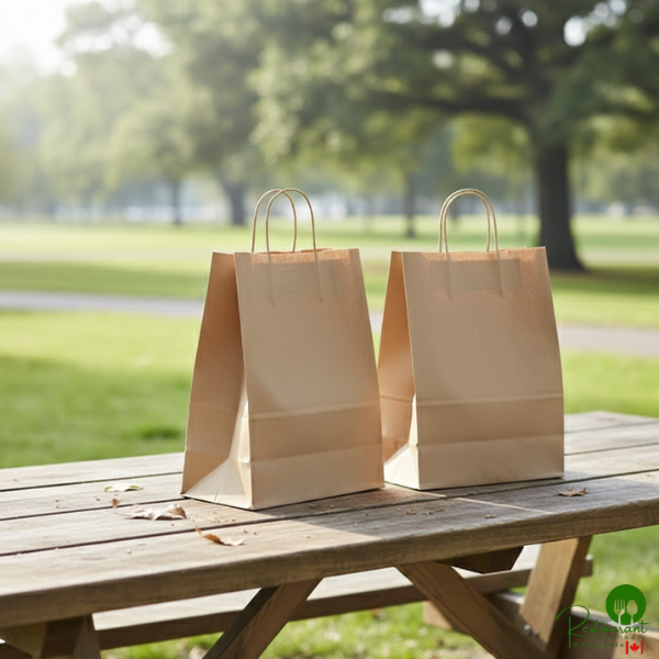 Ideal for restaurants that frequently serve takeout and delivery, these bags feature a versatile kraft paper appearance that complements any brand. The twisted handle design makes transportation simple, while the rectangular foundation ensures stability during transit. When not in use, the bags fold flat for convenient storage at your establishment.
