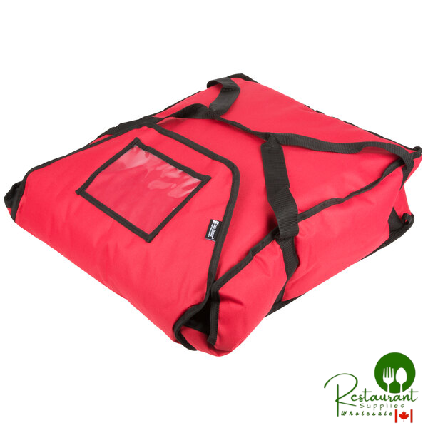 Maintain pizza quality and temperature during transport with the San Jamar PB20-6 insulated pizza delivery bag. This professional-grade red nylon bag features 3/4" moisture-free polyester batting insulation that effectively retains heat while preserving pizza freshness and flavor. Designed specifically for frequent pizza delivery operations, this durable carrier ensures pizzas arrive hot and delicious at their destination.