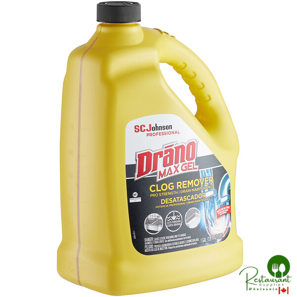 This SC Johnson Drano® 696642 1 gallon Max gel clog remover is perfect for unclogging and maintaining drains in your facility's kitchen or bathroom. Its quick-acting formula is specifically designed to dissolve tough grease, hair, and mineral buildup.