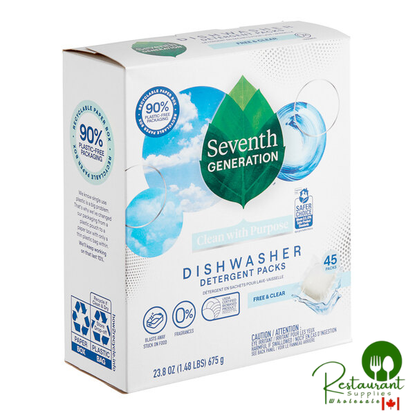 Take the hassle out of washing dishes with Seventh Generation Free & Clear dishwasher detergent packs. Each pack features a powerful plant-based formula with oxygenated bleach and natural enzymes to deliver a deep, thorough clean without harsh chemicals.