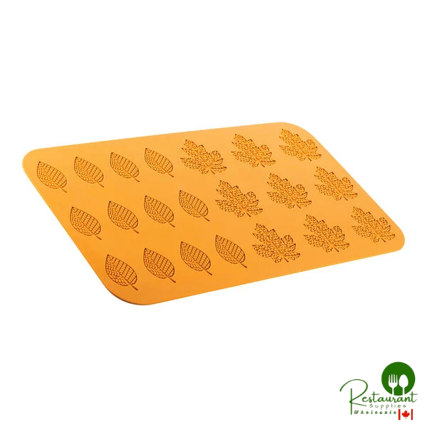 This Silikomart BOSCO mold is designed for professional kitchens seeking to elevate their dessert presentations with seasonal flair. The 21 autumn leaf cavities (12 small, 9 medium) create beautiful, detailed impressions perfect for chocolate leaves, gelatin desserts, butter decorations, petit fours, and other delicate confections. The platinum silicone construction ensures durability and easy food release, while the vibrant yellow color provides excellent visibility in the kitchen. Ideal for bakeries, restaurants, and catering operations looking to add a touch of autumn elegance to their menu offerings.