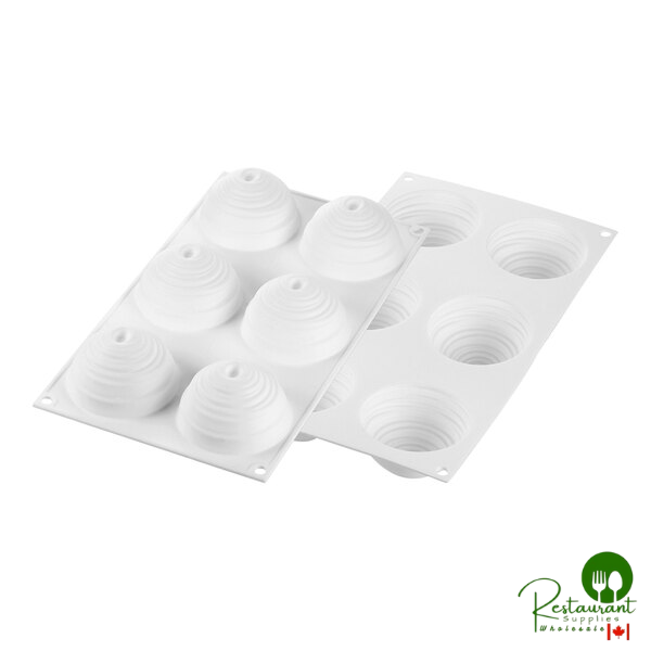 Create irresistible, eye-catching desserts with this Silikomart Curve Montblanc 6-compartment white silicone baking mold. This professional-grade mold features a versatile temperature range of -76°F to 446°F, making it suitable for baking, freezing, and refrigerating applications. Perfect for creating detailed jellies, chocolates, cakes, and other confections with its classic hive-shaped Mont Blanc design.