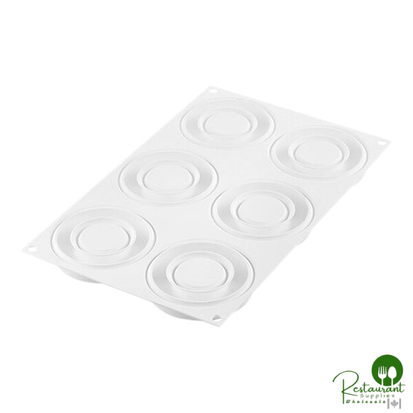 This Silikomart CURVEPROMISE65 silicone mold features 6 smooth ring-shaped cavities designed for creating elegant savarin-style desserts. Crafted from 100% platinum liquid silicone in an elegant white finish, it offers superior food safety with non-toxic, odorless, and tasteless properties.