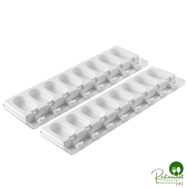 Professional set designed for bakeries and cafes. The platinum liquid silicone molds are non-toxic, tasteless, and odorless with built-in stick holders for perfectly centered pops. Polycarbonate trays stabilize molds during freezing and double as elegant display trays.