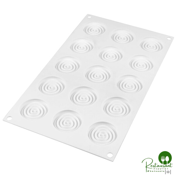 Create exquisite, decorative desserts with this premium platinum silicone mold featuring 15 intricate tourbillon-shaped compartments. The elegant design and professional-grade construction deliver stunning presentation pieces perfect for upscale bakeries and pastry shops.
