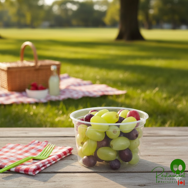 This 16 oz. contact clear polypropylene deli container is ideal for storing delicious salads, soups, and other tasty dishes. Its durable design and outstanding product visibility make it the perfect container for whatever food you're selling!