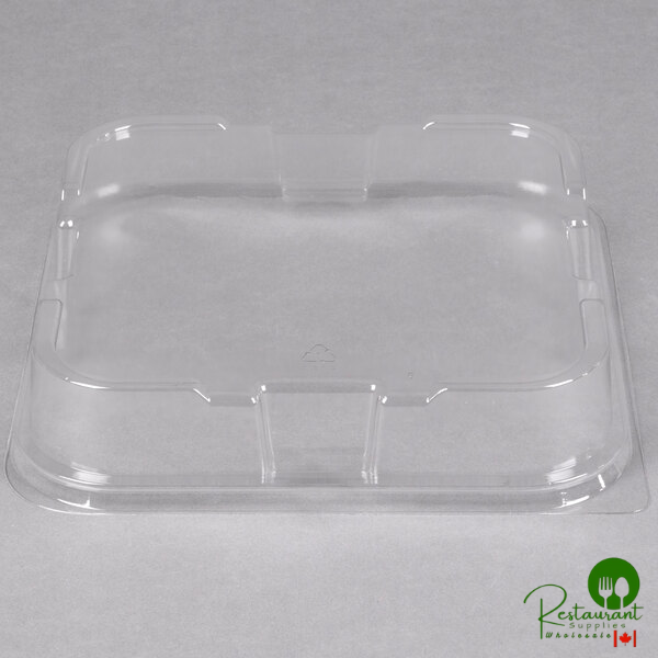 Designed specifically for 8" × 8" square pans, these dome lids feature smooth walls and a precise fit that securely snaps onto compatible pans. The clear PET construction offers excellent product visibility while maintaining food freshness, making them ideal for grab-and-go displays, catering events, and retail presentation.