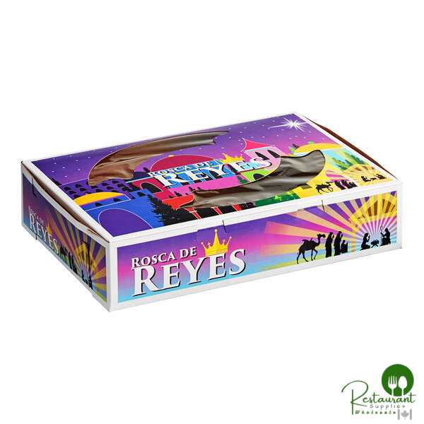 Celebrate the festive season with these exquisite Southern Champion 14" x 10" x 3 ⅛" holiday bakery boxes featuring a vibrant Rosca de Reyes design. Crafted from durable one-piece paperboard, these specialty boxes are designed to showcase your beautifully prepared holiday treats while providing secure protection during transport.